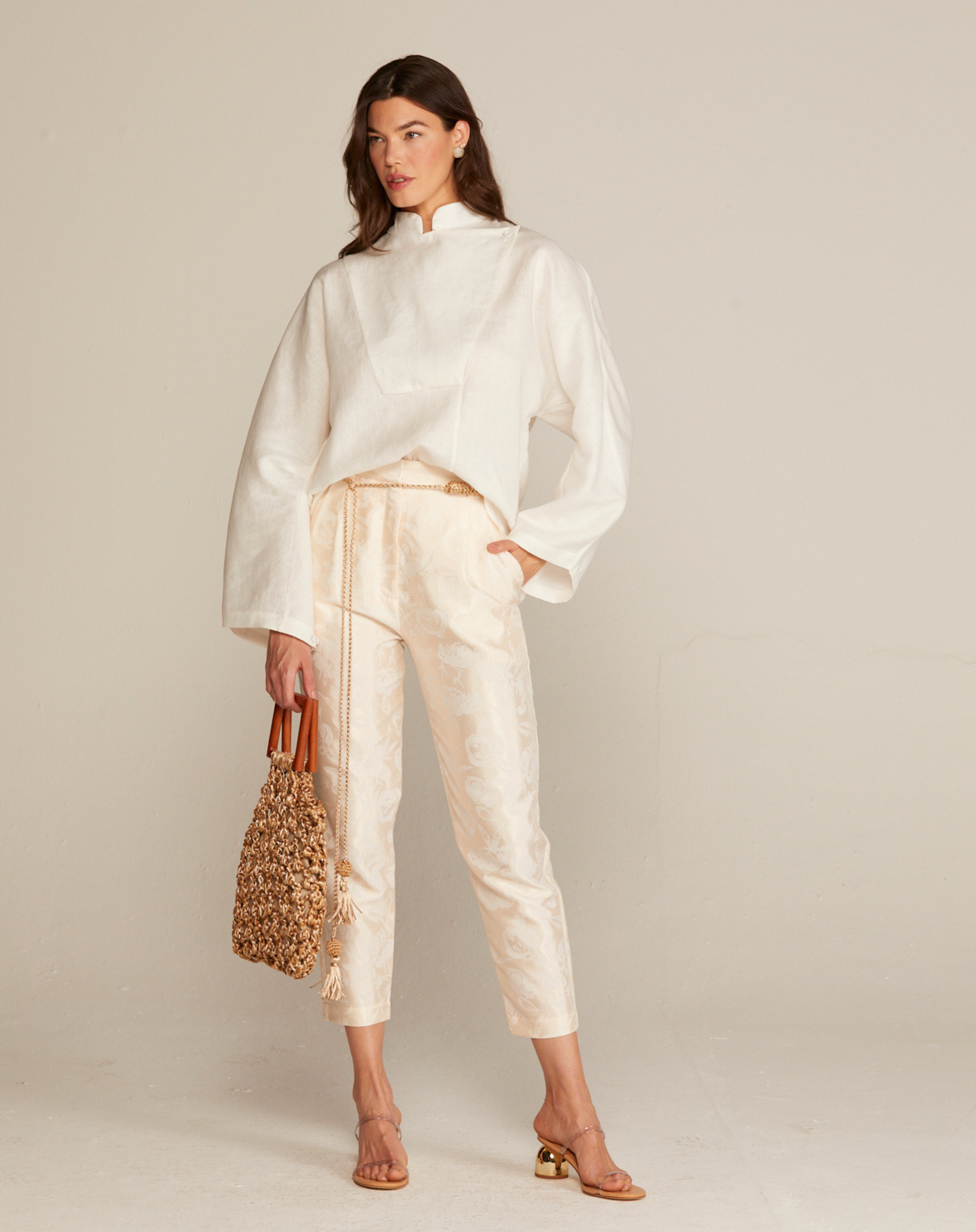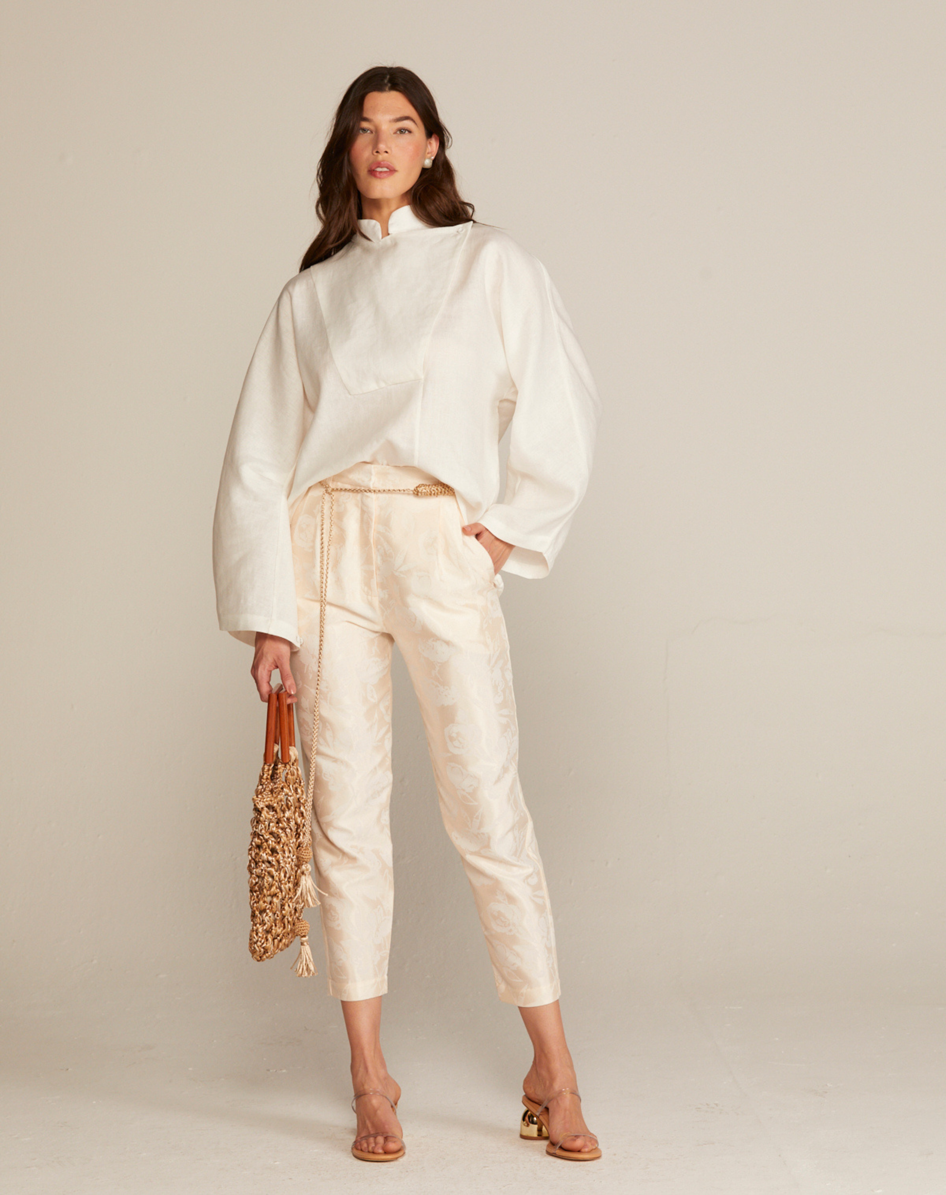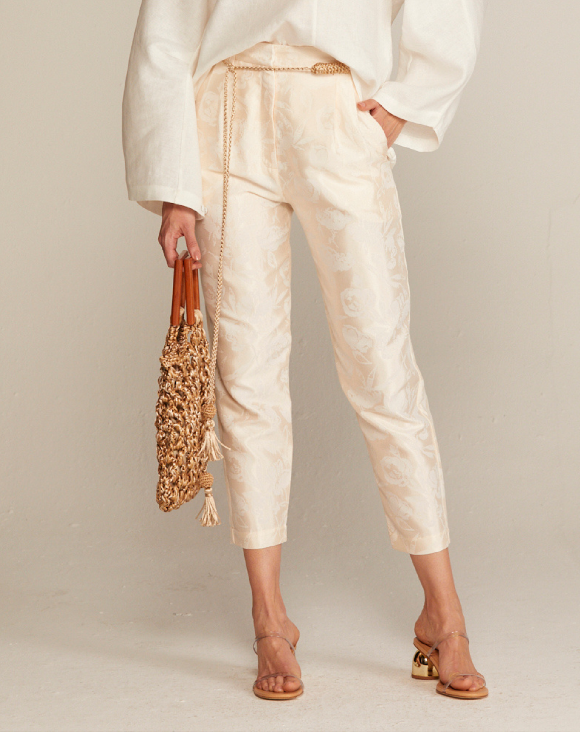 A Calça Lavanda da marca ALUF é a definição de peça coringa com um toque de sofisticação. Confeccionada em jacquard de algodão e poliéster, ela possui uma estabilidade perfeita no caimento e um brilho sutil que a torna elegante sem esforço. Sua versatilidade é o ponto forte: combine com tênis e t-shirt para um look casual chic no dia a dia ou trabalho, ou eleve a produção com um salto para almoços, jantares e até festas de final de ano. É a calça atemporal que faltava no seu closet para criar looks elegantes e modernos em qualquer ocasião.