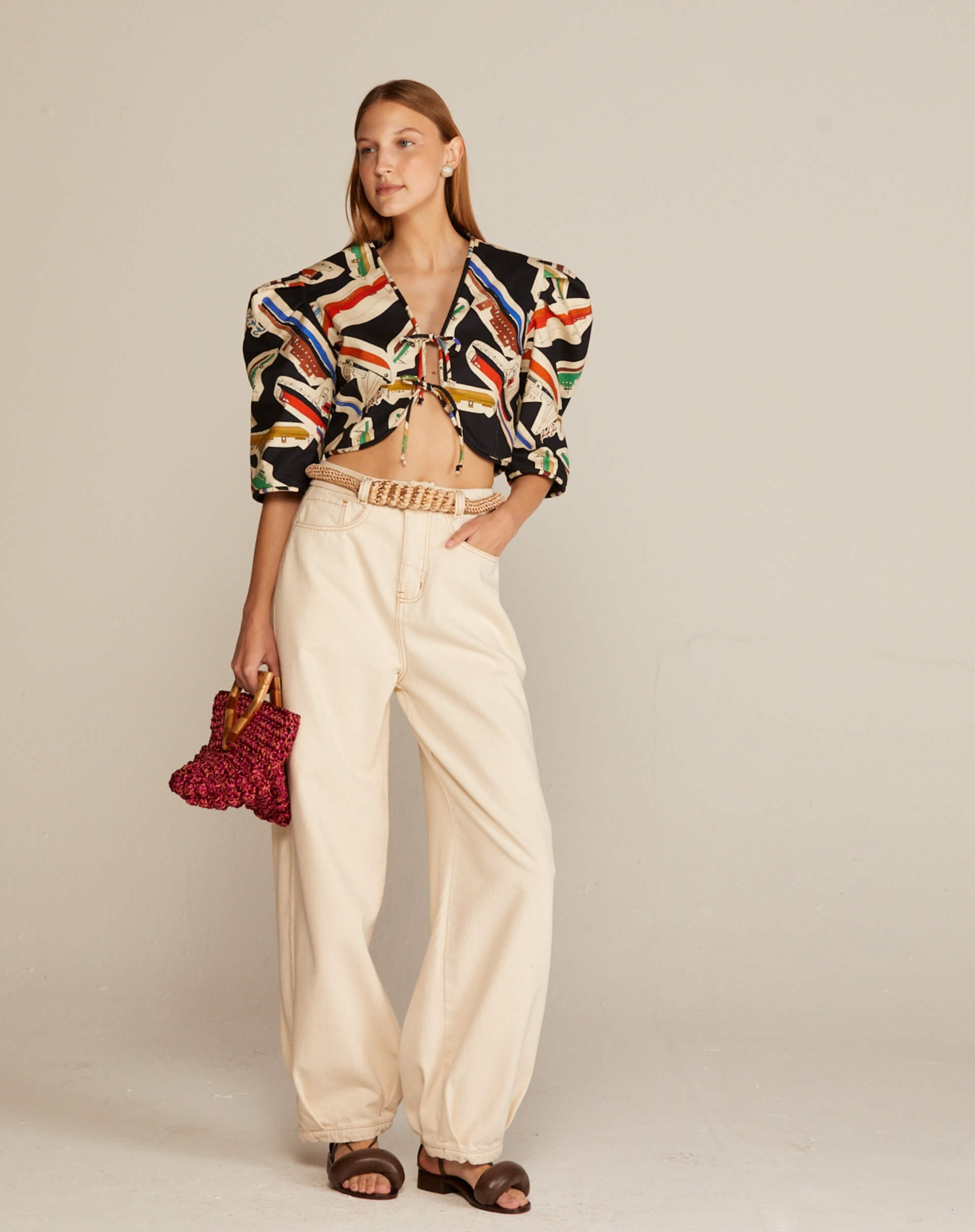 O Casaqueto Sailor Estampado da marca Lo de Lui é a peça que une romantismo e tendência em um design único. Confeccionado em 100% algodão, ele oferece o frescor da fibra natural aliado a uma estampa exclusiva cheia de personalidade. O destaque absoluto fica por conta da modelagem: as mangas bufantes trazem volume e sofisticação, enquanto as amarrações frontais duplas adicionam um toque moderno e despojado. Versátil, ele transforma o jeans básico do dia a dia e compõe looks elegantes para trabalho, jantares e festas de final de ano. É a "terceira peça" perfeita para quem busca um visual autêntico e cheio de informação de moda.