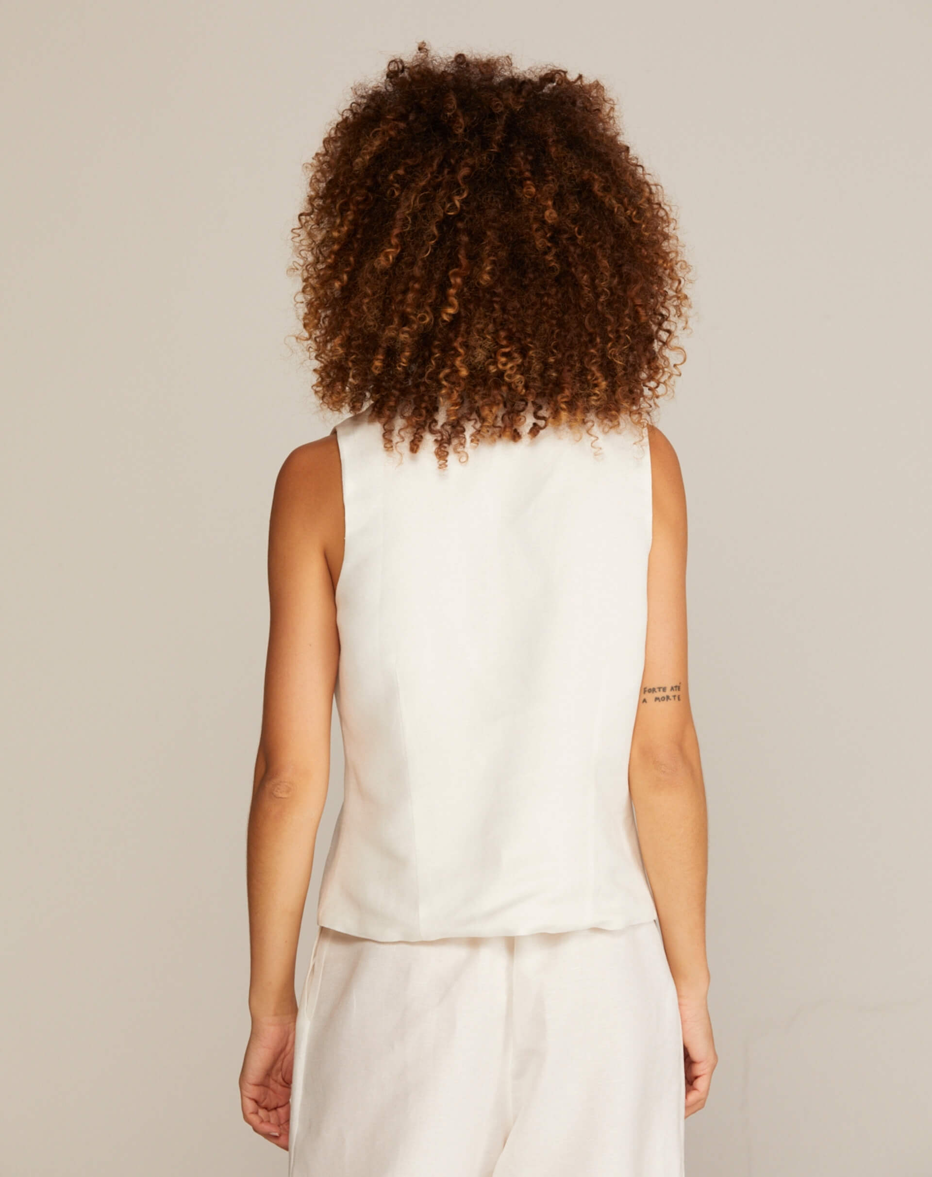 O Colete Flora da marca MEYO é a peça essencial para quem busca a tendência da alfaiataria com leveza e frescor. Ele une a textura nobre e rústica do linho com o caimento fluido e o toque macio da viscose, garantindo uma peça que amassa menos e veste impecavelmente. Com forro em 100% viscose para conforto total, seu acabamento é leve e estruturado na medida certa. Extremamente versátil, use-o como blusa única para um visual moderno ou como terceira peça sobreposta. Ideal para transitar do escritório a almoços e festas de final de ano. É o clássico renovado que traz sofisticação instantânea ao seu guarda-roupa.