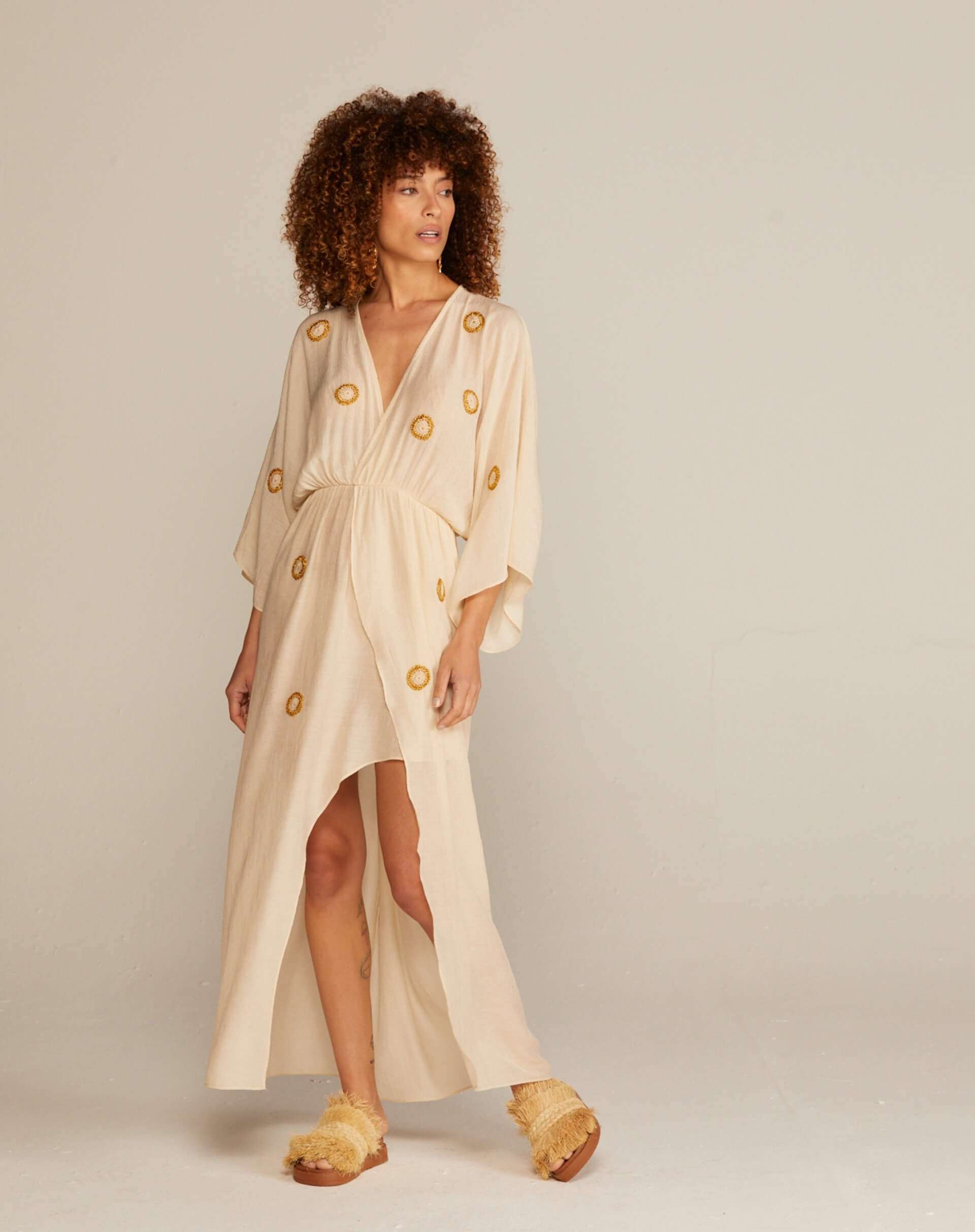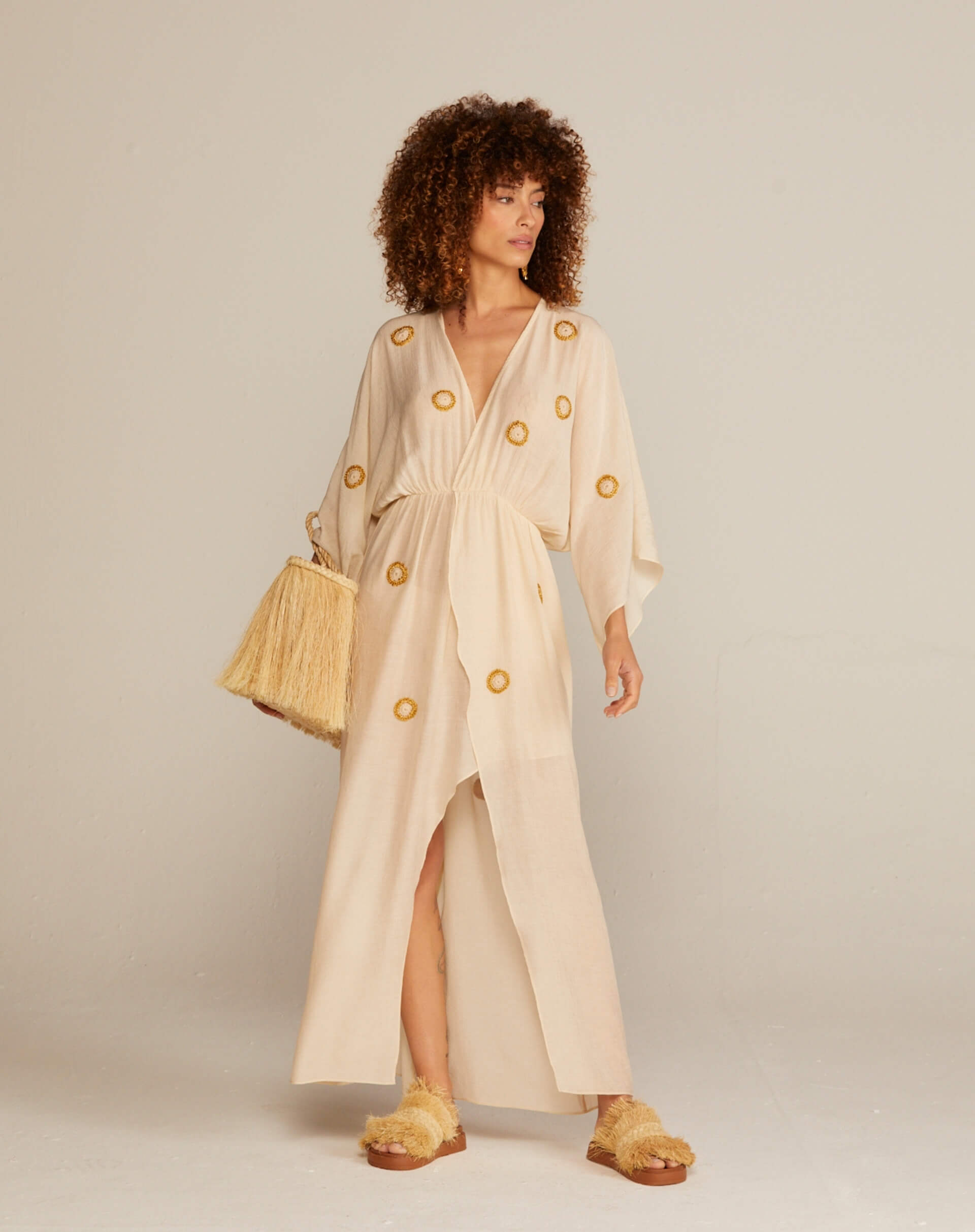 O Vestido Transpassado Ágata da marca Catarina Mina é a união perfeita entre feminilidade e riqueza artesanal. Confeccionado em um blend de 80% viscose e 20% poliamida, ele oferece um caimento fluido, leveza e menor tendência a amassar. Sua modelagem transpassada com decote V é um clássico que valoriza a silhueta, enquanto o elástico na cintura garante ajuste confortável e prático. O toque de exclusividade fica por conta dos delicados detalhes em crochê, assinatura da marca. Pensando na funcionalidade, a peça acompanha um forro avulso, garantindo liberdade e segurança ao vestir. Ideal para transitar do trabalho a jantares e festas de final de ano. É a peça única que veste com elegância, conforto e a alma do design brasileiro.